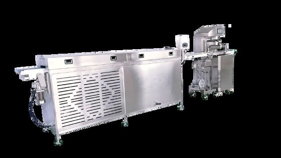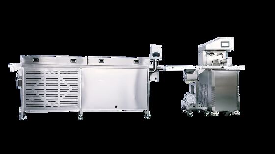 Terowongan pendingin terintegrasi adalah kunci efisiensi. Hal ini menyediakan lingkungan pendinginan yang terkontrol dan terus menerus, memungkinkan produk cokelat tempered untuk sempurna dalam hitungan menit.Ini merampingkan produksi Anda, menghilangkan kebutuhan untuk stasiun tempering dan pengaturan yang terpisah, dan memaksimalkan output dalam jejak kecil.