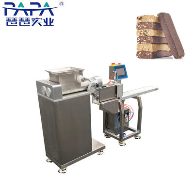 Protein Bar extruder is a upgrade type which is more suitable for making various bars cookies like date bars, energy bars, fruit bars, protein bars, chocolate bars, vegan bars, Cereal bar, Muesli bars, Nutritious bars, snack bars and so on. The bar Extruder and the cutter are independent and controlled by PLC touch panel, so it is easy for operating and working in stable condition. Protein Bar extruder is our new designed extruder machines specially for making hard dough or sticky dough bars. The horizontal protein bar extruder has three extruding screw device to guarantee the dough extruded successfully, the horizontal design guarantees the perfect bar shape. The horizontal protein bar extruding machine can adjust the bar length by cutter, and bar width and thickness by change moulds.